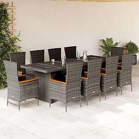 vidaXL Matgrupp för trädgården med dynor 11 delar grå konstrotting 3277559