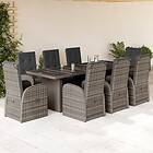 vidaXL Matgrupp för trädgården med dynor 9 delar grå konstrotting 3277600