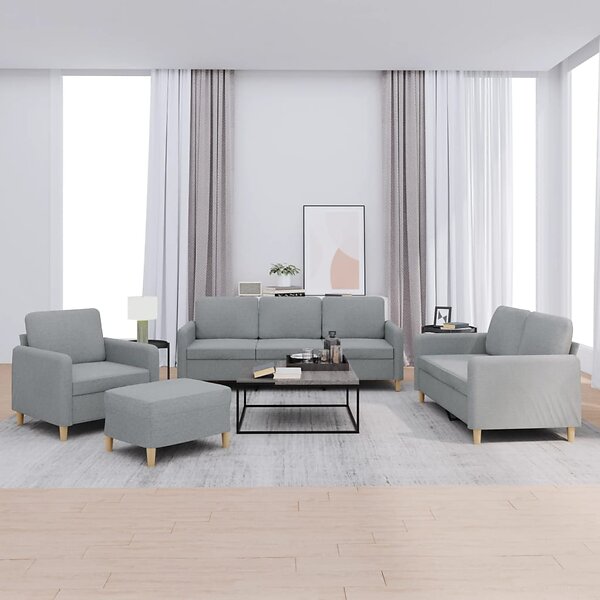 vidaXL Soffgrupp med dynor 4 delar Ljusgrå tyg 3202062
