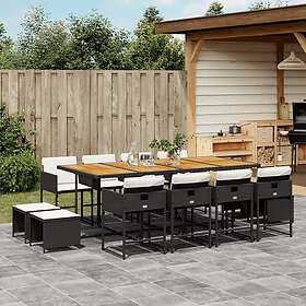 vidaXL Matgrupp för trädgården med dynor 13 delar svart konstrotting 3278114