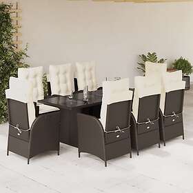 vidaXL Matgrupp för trädgården med dynor 17 delar brun konstrotting 3278192