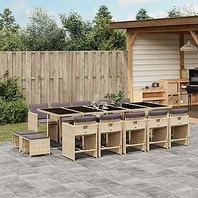vidaXL Matgrupp för trädgården m. dynor 15 delar mixbeige konstrotting 3277943