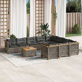 vidaXL Loungegrupp för trädgården med dynor 11 delar grå konstrotting 3262041