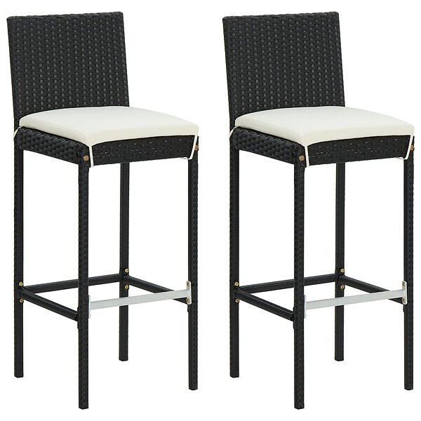 vidaXL Barstolar för utomhusbruk med dynor 2 st svart konstrotting 316668