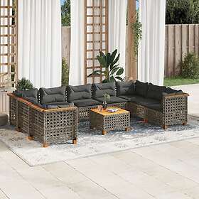 vidaXL Soffgrupp för trädgården med dynor 10 delar grå konstrotting 3261987