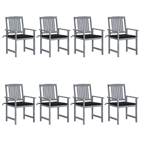 vidaXL Trädgårdsstolar med dynor 8 st massivt akaciaträ grå 3078229