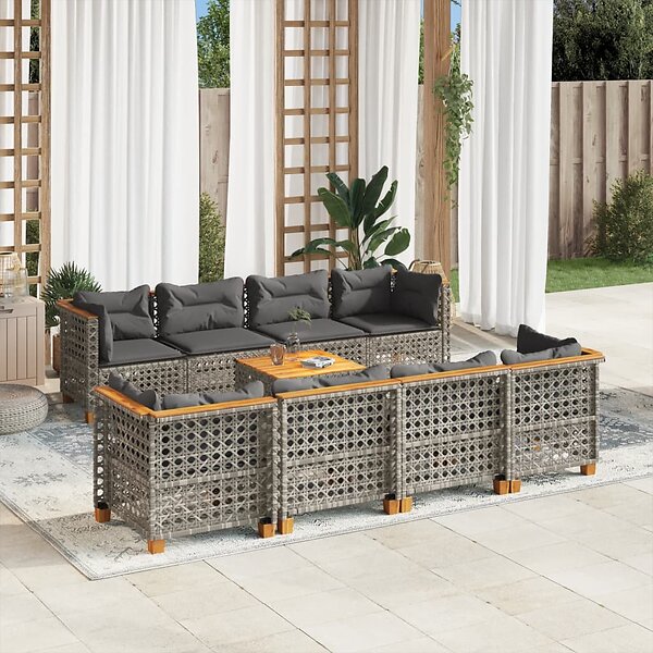 vidaXL Loungegrupp för trädgården m dynor 9 delar grå konstrotting 3261771