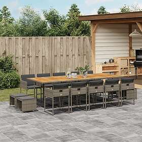vidaXL Matgrupp för trädgården med dynor 15 delar grå konstrotting 3278125
