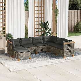 vidaXL Soffgrupp för trädgården med dynor 7 delar grå konstrotting 3261939