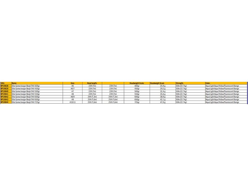RIO Products Elite Gamechanger Body F/S3/S5 #8/9 600gr/38,9g 7,3m