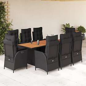 vidaXL Matgrupp för trädgården med dynor 9 delar svart konstrottning 3213140