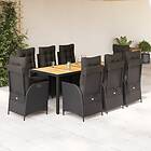 vidaXL Matgrupp för trädgården med dynor 9 delar svart konstrottning 3213101