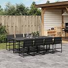 vidaXL Matgrupp för trädgården med dynor 9 delar svart textilene 3295075