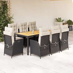 vidaXL Matgrupp för trädgården med dynor 9 delar svart konstrottning 3213092