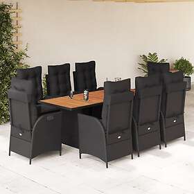 vidaXL Matgrupp för trädgården med dynor 9 delar svart konstrottning 3213141