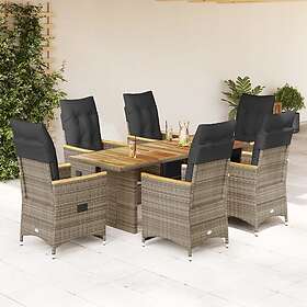 vidaXL Caféset med dynor 7 delar konstrotting grå 3276973