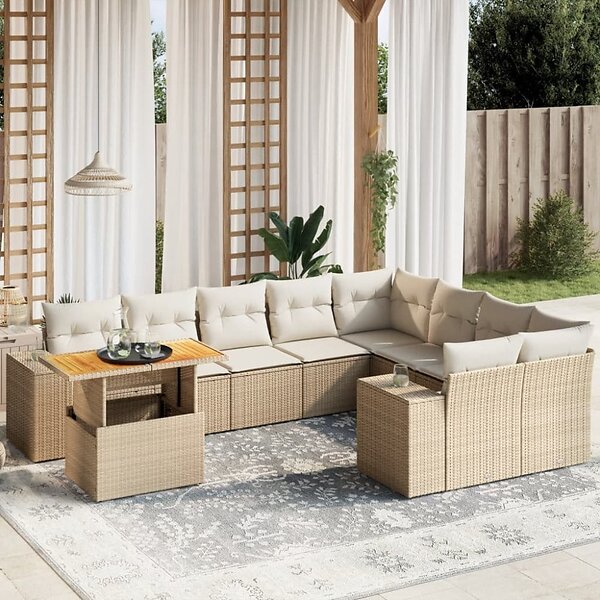 vidaXL Soffgrupp för trädgård med dynor 10 delar beige konstrotting 3272801