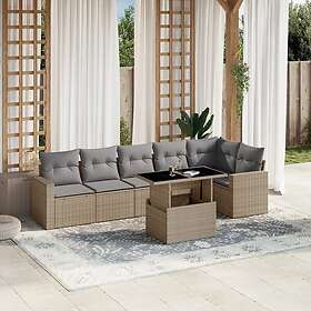 vidaXL Matgrupp för trädgården med dynor 7 delar beige konstrotting 3273970