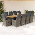 vidaXL Matgrupp för trädgården med dynor 11 delar grå konstrotting 3277238