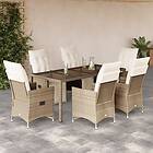vidaXL Caféset för trädgården 7 delar med dynor beige konstrotting 3276941