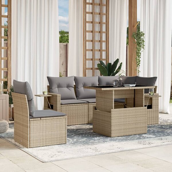 vidaXL Soffgrupp för trädgården med dynor 6 delar beige konstrotting 3267909