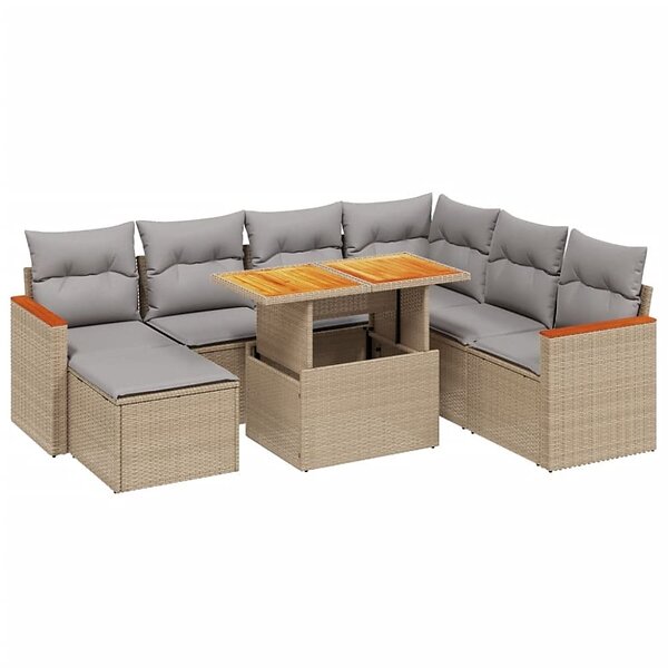vidaXL Matgrupp för trädgården med dynor 8 delar beige konstrotting 3276055