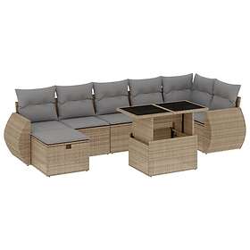 vidaXL Matgrupp för trädgården med dynor 8 delar beige konstrotting 3275149