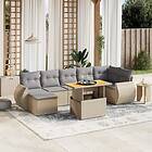 vidaXL Matgrupp för trädgården med dynor 8 delar beige konstrotting 3272305