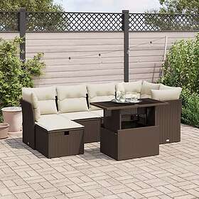 vidaXL Trädgårdssoffset med dynor 7 delar brun konstrotting 3274663
