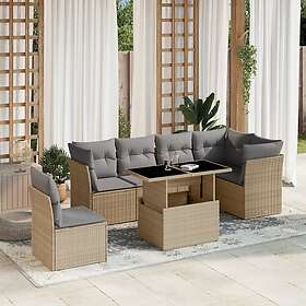 vidaXL Matgrupp för trädgården med dynor 7 delar beige konstrotting 3266619
