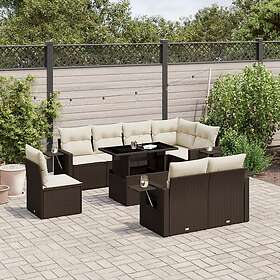 vidaXL Loungegrupp för trädgården med dynor 9 delar konstrotting brun 3266733