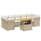 vidaXL Matgrupp för trädgården med dynor 8 delar beige konstrotting 3270701