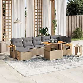 vidaXL Matgrupp för trädgården med dynor 8 delar beige konstrotting 3273628