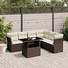 vidaXL Trädgårdssoffset med dynor 7 delar brun konstrotting 3266613