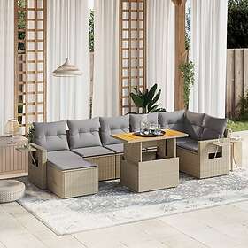 vidaXL Matgrupp för trädgården med dynor 8 delar beige konstrotting 3275712