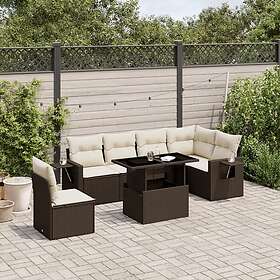 vidaXL Trädgårdssoffset med dynor 7 delar brun konstrotting 3267943