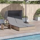 vidaXL Dubbel solsäng med tak och dynor beige konstrotting 368640
