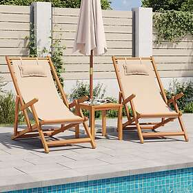 vidaXL Hopfällbara solstolar 2 st beige tyg och massivt trä 3214487