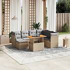 vidaXL Matgrupp för trädgården med dynor 8 delar beige konstrotting 3270954