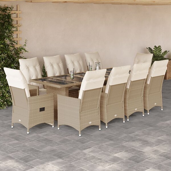 vidaXL Matgrupp för trädgården med dynor 11 delar beige konstrotting 3277248