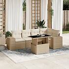 vidaXL Soffgrupp för trädgården med dynor 6 delar beige konstrotting 3269148