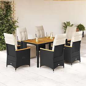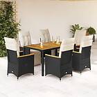 vidaXL Matgrupp för trädgården med dynor 7 delar svart konstrotting 3276962