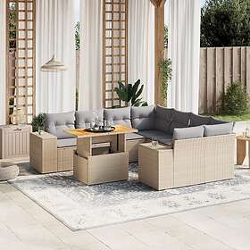 vidaXL Soffgrupp för trädgården med dynor 9 delar beige konstrotting 3272564