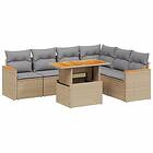 vidaXL Matgrupp för trädgården med dynor 7 delar beige konstrotting 3273096