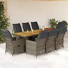 vidaXL Caféset med dynor 9 delar konstrotting grå 3277259