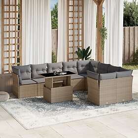 vidaXL Soffgrupp för trädgård med dynor 10 delar beige konstrotting 3266839
