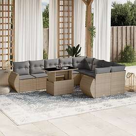 vidaXL Soffgrupp för trädgård med dynor 10 delar beige konstrotting 3268759