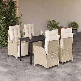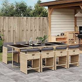 vidaXL Matgrupp för trädgården med dynor 7 delar beige konstrotting 3272738
