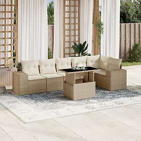 vidaXL Matgrupp för trädgården med dynor 7 delar beige konstrotting 3269178