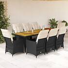 vidaXL Caféset med dynor 9 delar konstrotting svart 3277255